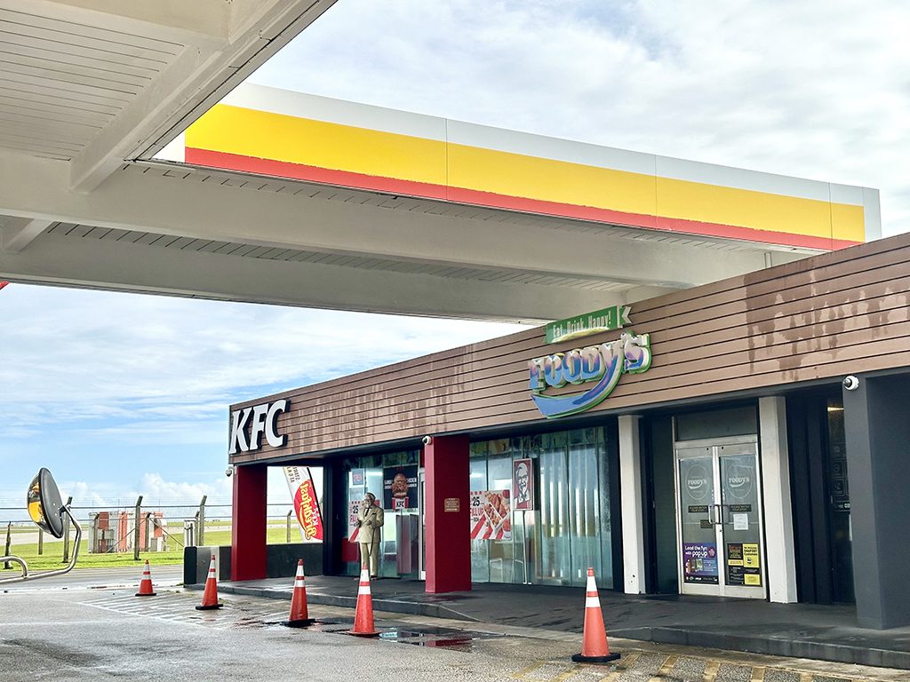 数十メートル隣にはケンタッキーフライドチキンのバリガダ店。両店ともに窓際の席に座ると空港を離発着する飛行機を楽しむことができます。