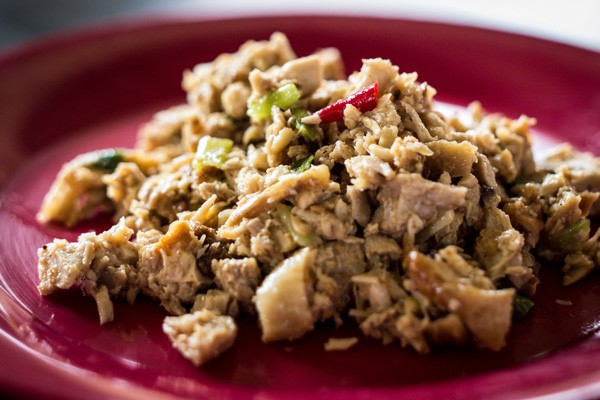Chamorros are known for their kelaguen-making skills and this food is a signature local dish. Kelaguen is based around the cooking property of lemon juice and has similarities to ceviche. A combination of lemon juice, onions, local hot peppers, salt and sometimes grated coconut are used to “kelaguen” either seafood, beef, chicken or even Spam.