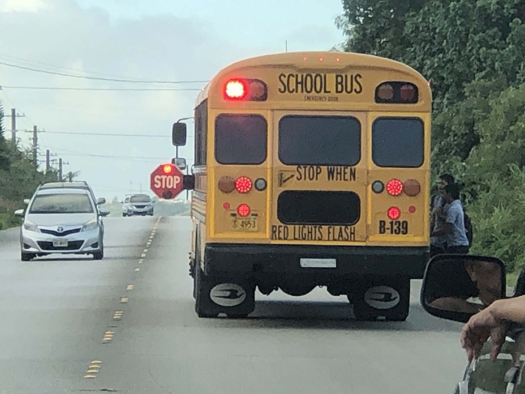 Today I introduce traffic rules you should know. Everyday school buses are running in USA and Guam. These rules are for protecting children.