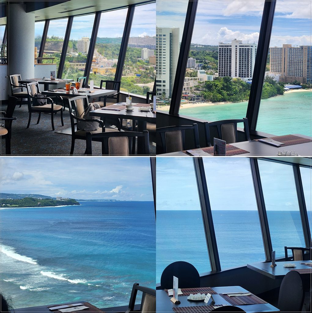 一進入餐廳,大片落地窗俯覽整個杜夢灣,絕佳的地理位置,絕對是關島前幾名的賞夕陽景點。
