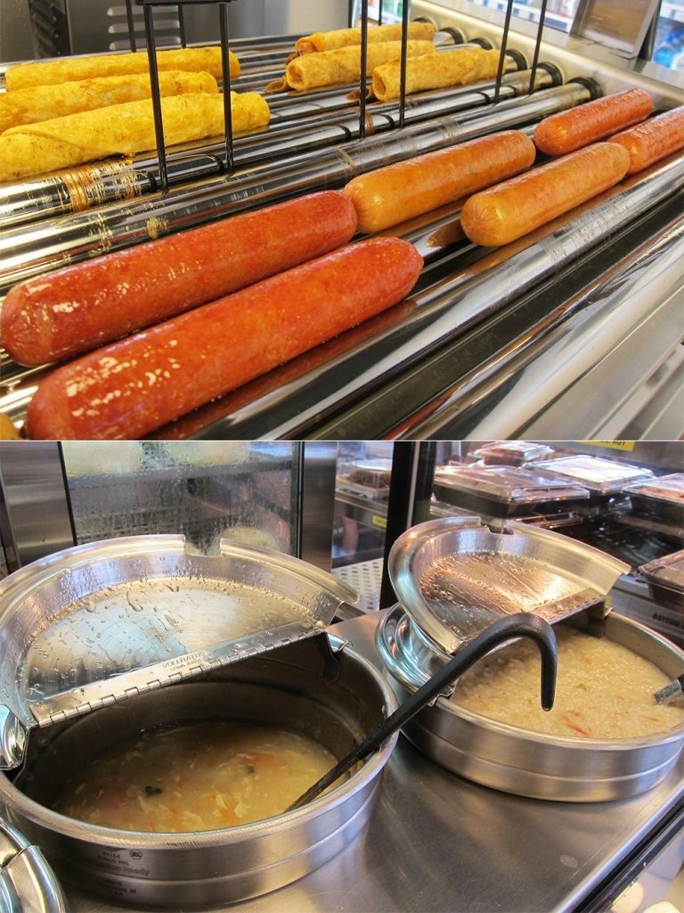 當然便利商店必備的熱狗這裡也少不了,各種醬料一字排開,吃起來跟台灣不太一樣,味道比較厚重些。但另外有販售湯品及稀飯就有點意外了,因為關島有許多來自菲律賓的住民,而這粥就是他們的傳統小吃Arroz Caldo,加入肉湯及辛香料,感覺十分適合宿醉時來上一碗。